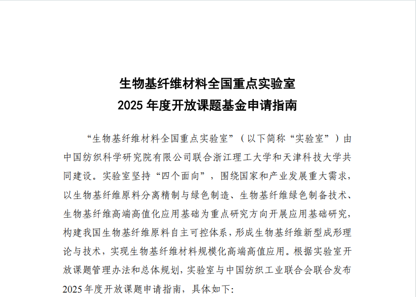 - 生物基纤维材料全国重点实验室2025年度开放课题基金申请...